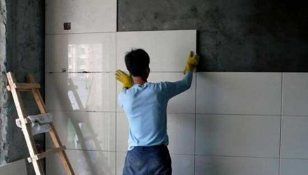 將少量的粘結劑膠漿,滿刮在瓷磚背面,抹平背面凹槽,將抹有膠漿陶瓷磚按要求貼到恰到位置上。
