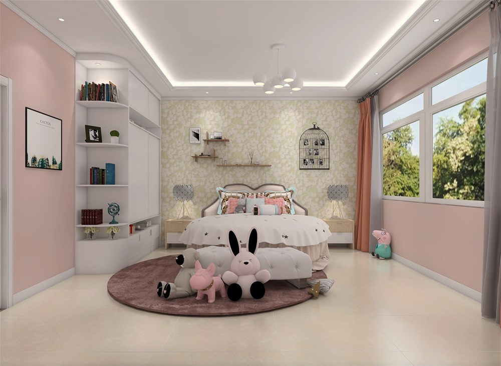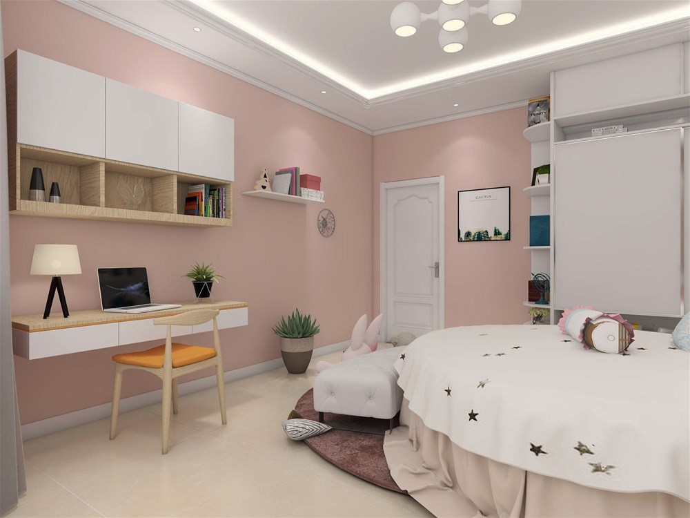 粉色的壁紙營(yíng)造出粉嫩可愛(ài)的氛圍
