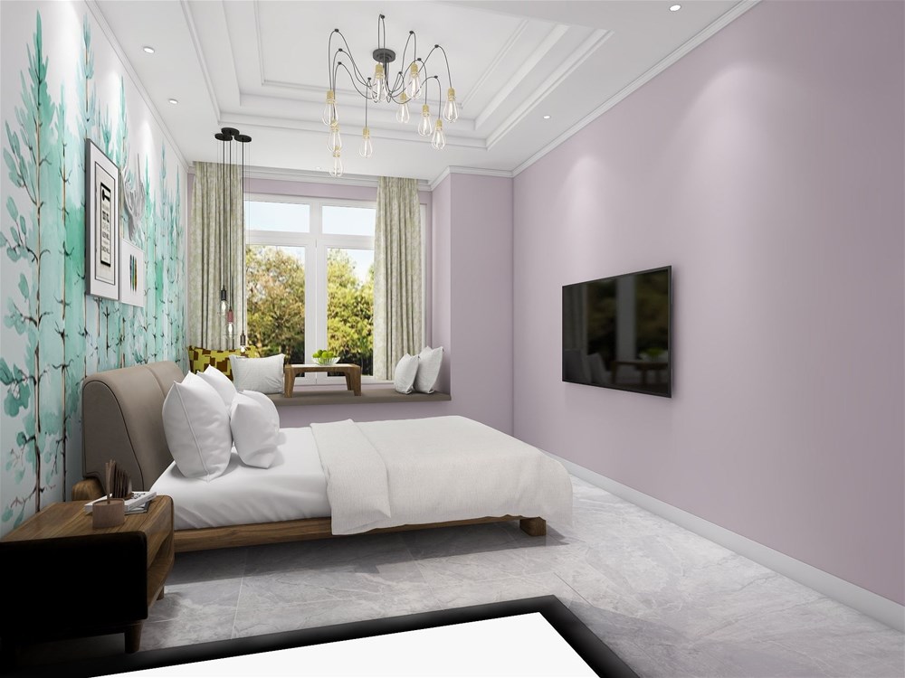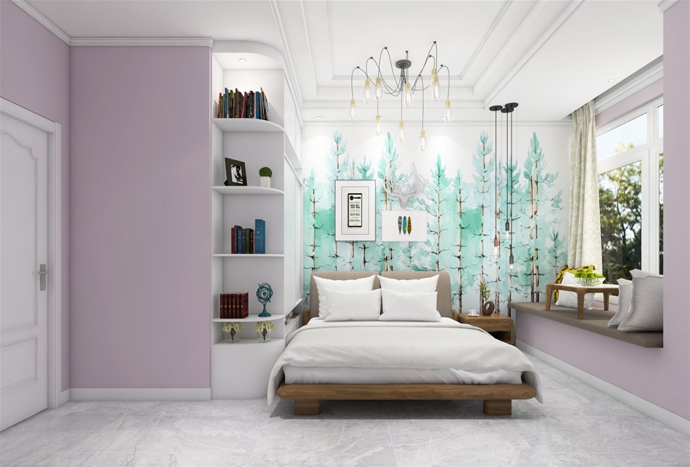 粉色墻紙與綠色樹(shù)木圖案墻紙