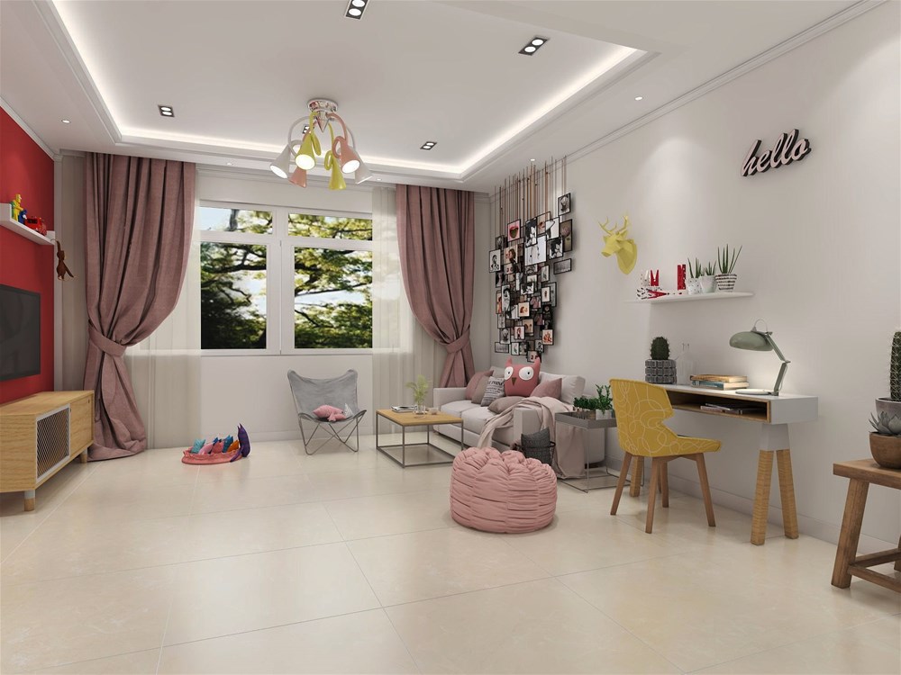 米黃的地磚與粉色碰撞出溫馨、愉快的氣氛